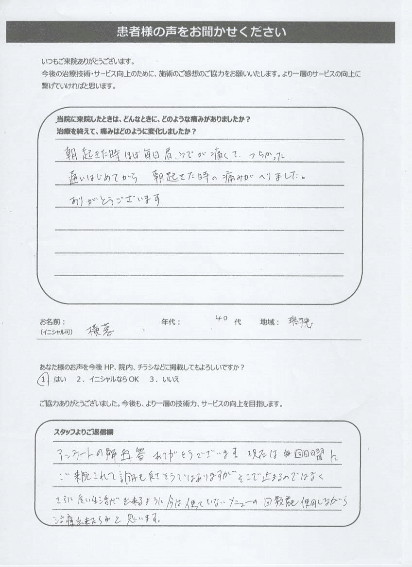 瑞穂 横幕様 40代 (肩・腕の痛み)