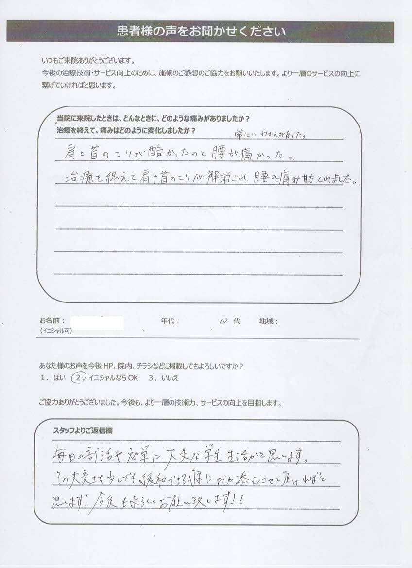 大野町 M.H 10代 (腰痛、肩首コリ)